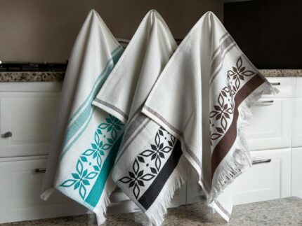 Set 6 kuhinjskih krpa od 100% pamuka, dimenzija 40x60 cm i gustoće 360 g/m2. Idealne za svaku kuhinju, pružaju izdržljivost i stil.