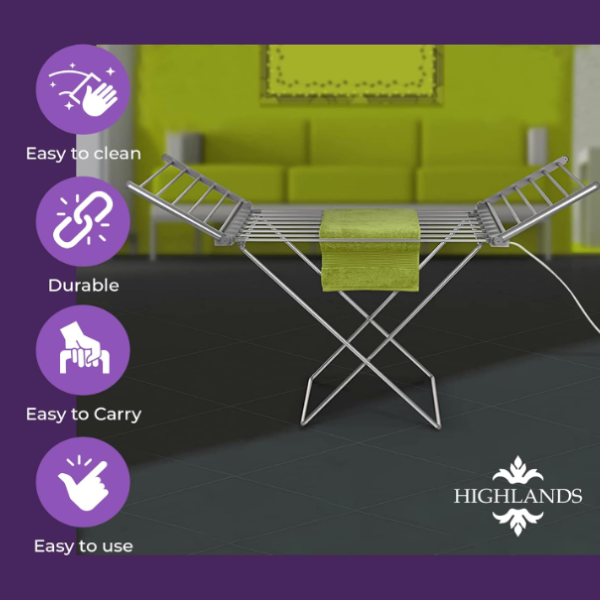 Električna sušilica sa 18 šina za brzo sušenje veša. Lako prenosiva, sklopiva i energetski efikasna. Izrađena od aluminijuma otpornog na koroziju.