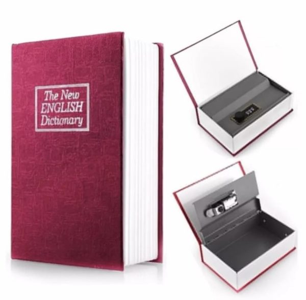 Sef kasa u obliku knjige napravljena od metala Spolja izgleda kao svaka knjiga, od kartona i papira, a iznutra metalna kutija Ima bravu sa dva ključa Natpis je vidljiv na slici